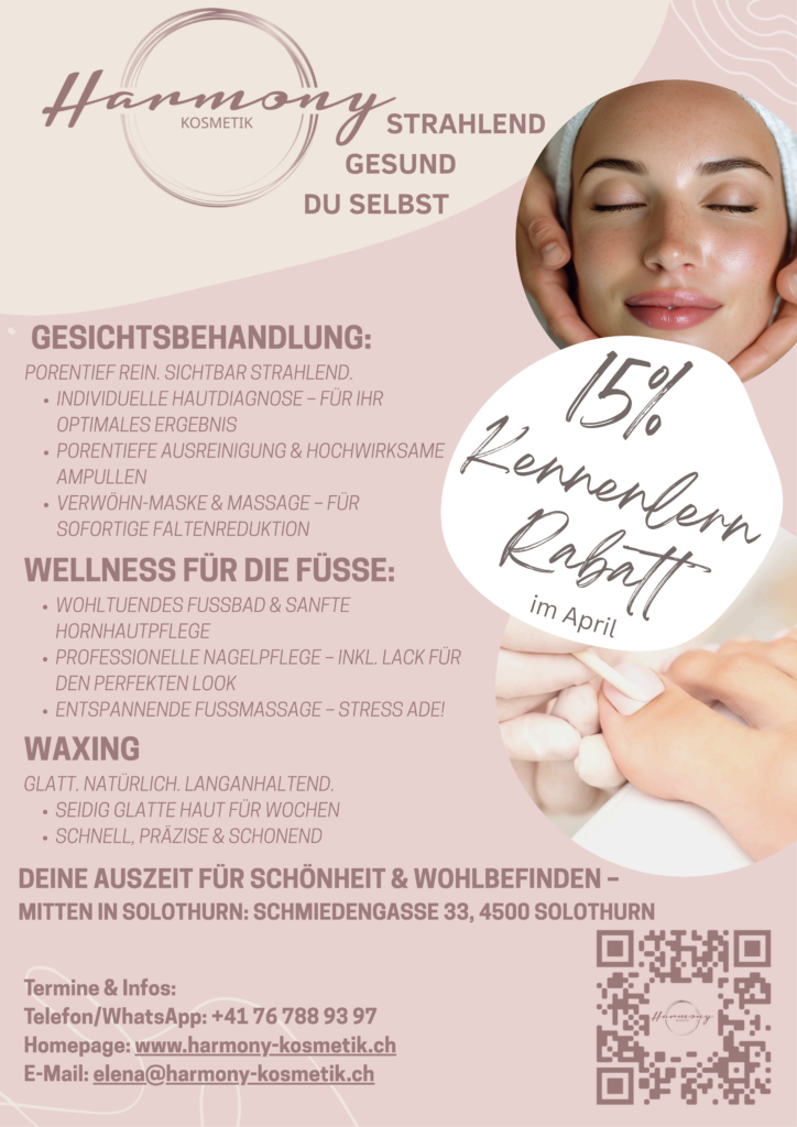 Nach über 10 Jahren mit Hingabe für Kosmetik in verschiedenen Studios und darauffolgenden sechs erfolgreichen Jahren mit meinem eigenen Studio in Rheinfelden freue ich mich sehr, meinen Weg nun in Solothurn fortzusetzen und mich weiterhin mit persönlichem Engagement und viel Herz für Deine Schönheit und Dein Wohlbefinden zu begleiten.